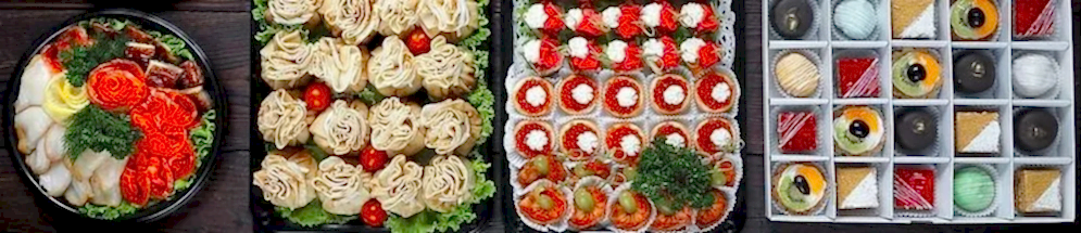 У нас вы сможете заказать еду для любого праздника, будь то фуршет на Новогодний стол, Pin Up для свадьбы, фуршет на выкуп невесты, фуршет на выпускной, фуршет на защиту диплома, фуршет на детский день рождения, проведения домашних застолий, вечеринок, и деловых встреч такие блюда как: салаты, канапе и тарталетки с разнообразными начинками, шашлыки, эксклюзивные десерты и многое другое.